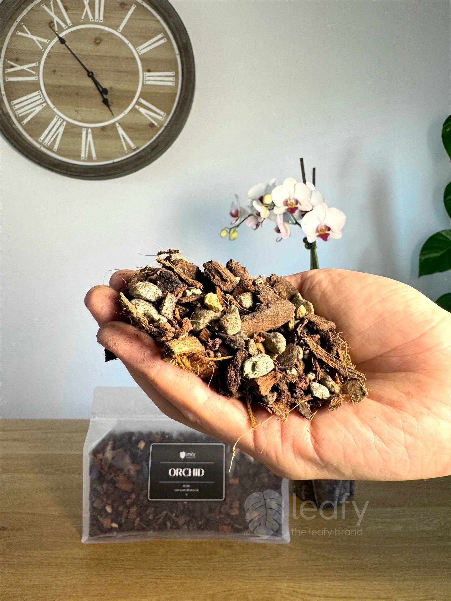 The leafy™ Orchid - 006 Light & airy Orchid Blend is a soil-free blend designed specifically for orchids grown in containers. This mix brings together mineral and organic ingredients that orchids love, creating the perfect balance of airflow, structure, and moisture control. Its gritty, porous texture keeps the roots breathing freely while preventing compaction, giving you reliable drainage and making over-watering far less likely. At the same time, the mix holds just enough moisture to keep orchids hydrated and growing steadily.